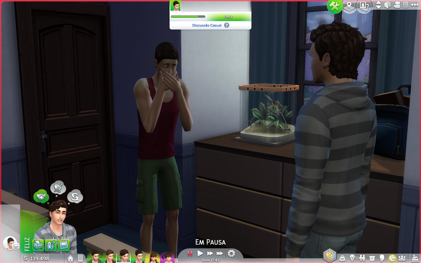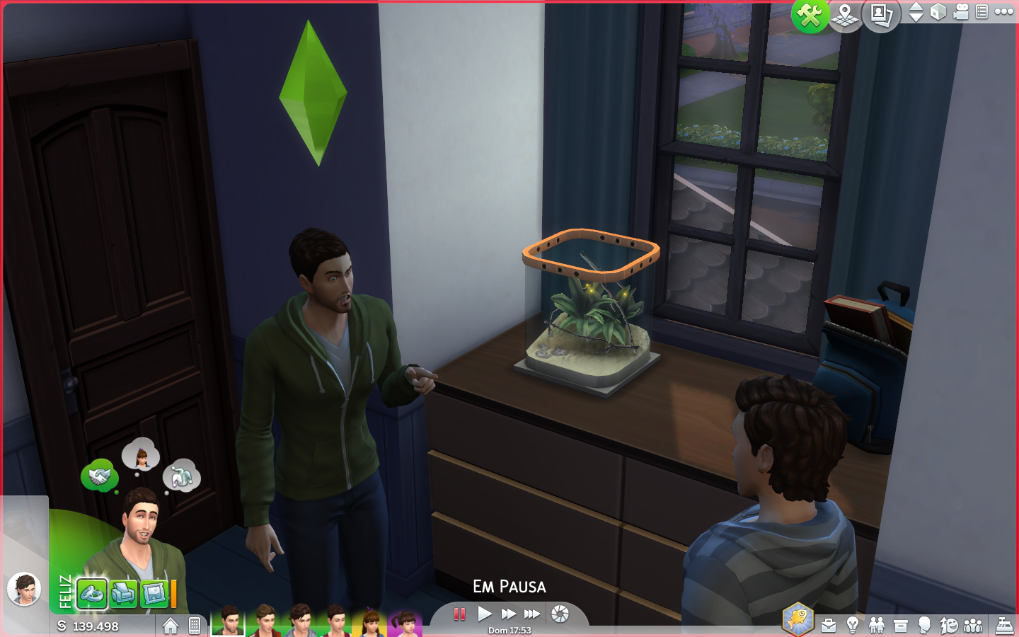 Parece que Dylan chegou da escola bastante triste, algo deu errado, e ele não pode ficar assim por muito tempo uma vez que possui um trabalho escolar para fazer. E com a opção "Conversar para Melhorar a Mudança de Humor" vamos dar um jeitinho nisso e perfeito! Dylan está se sentindo um pouco mais confiante!