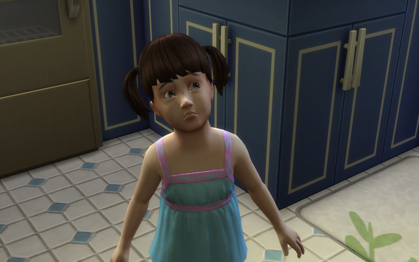 A pequena Leila brinca com sua irmã mais nova no jardim. Leila está utilizando um dos novos objetos que veio no The Sims 4 Vida em Família, o Kit Médico. Este novo item libera uma interação que se chama "brincar de médico" e permite a qualquer sim criança ser doutor por um dia, ou dois... ou até se tornar adolescente. O kit médico é capaz de fornecer pontos de resonsabilidade as crianças, o que certamente irá influenciar em atitudes de bom comportamento.
