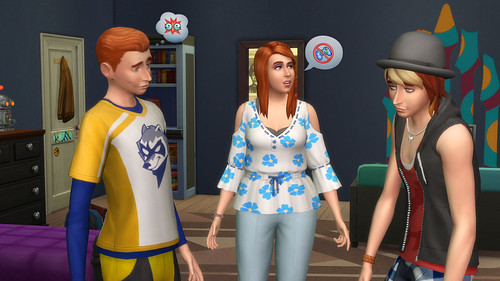 Vamos continuar com esse exemplo. Vamos supor que essa criança se torne um adolescente e, depois, um jovem adulto. Seus valores de caráter estarão definidos! Se a mãe não disciplinou comportamentos negativos, a criança receberá o traço Mal-educado. Isso irá desbloquear novas interações sociais, como Apontar Falhas. O Sim terá vontade de Xingar, indicando seu desejo pessoal de agir de forma mal-educada. Ele também mudará seu comportamento autônomo, como preferir interações grosseiras ou não lavar os pratos.